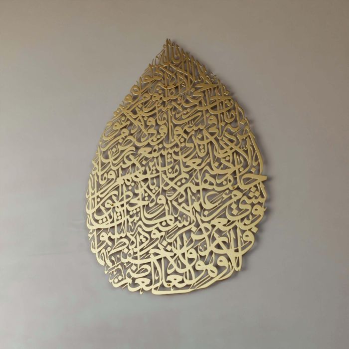 - لوحة جدارية معدنية آية الكرسي بالخط العربي تصميم دمعة 67 × 48 سم