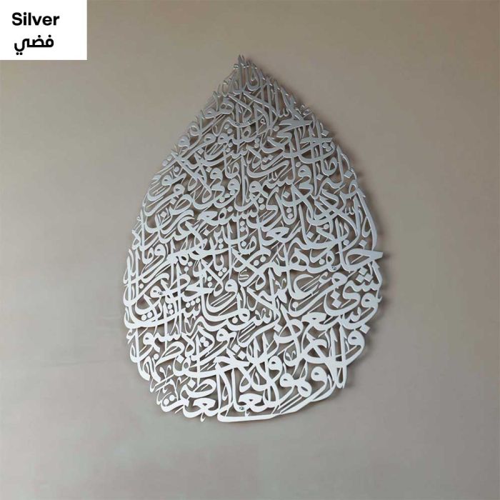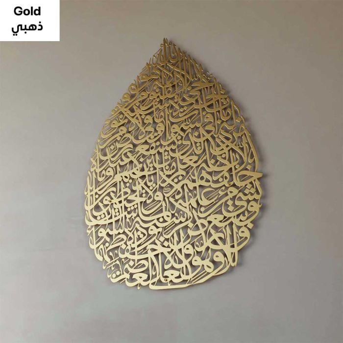 - لوحة جدارية معدنية آية الكرسي بالخط العربي تصميم دمعة 96 × 69 سم