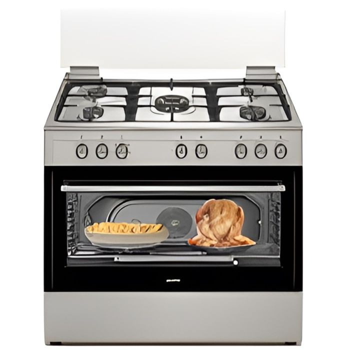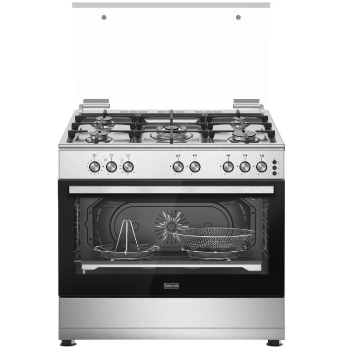 طباخ Tecna 90×60 سم مزود بخمس شعلات غاز متباينة القوة لتلبية جميع احتياجات الطهي، مع فرن غاز بسعة 102 لتر يحتوي على شواية ومروحة توربو للتحكم الأمثل في الطهي والشوي. يأتي مع شواية Verticle Rotisserie وAir-fryer Set، وباب فرن مزدوج الزجاج مع إمكانية إزالة الزجاج الداخلي بسهولة. يحتوي على عناصر أمان مثل Flame Failure Device على الشعلات والفرن، مع مؤقت ميكانيكي وإضاءة داخلية لمتابعة عملية الطهي.