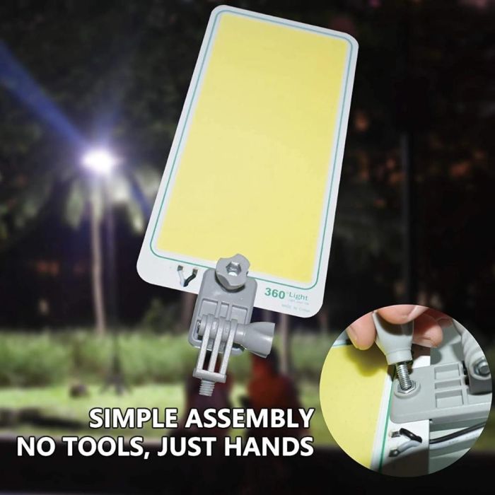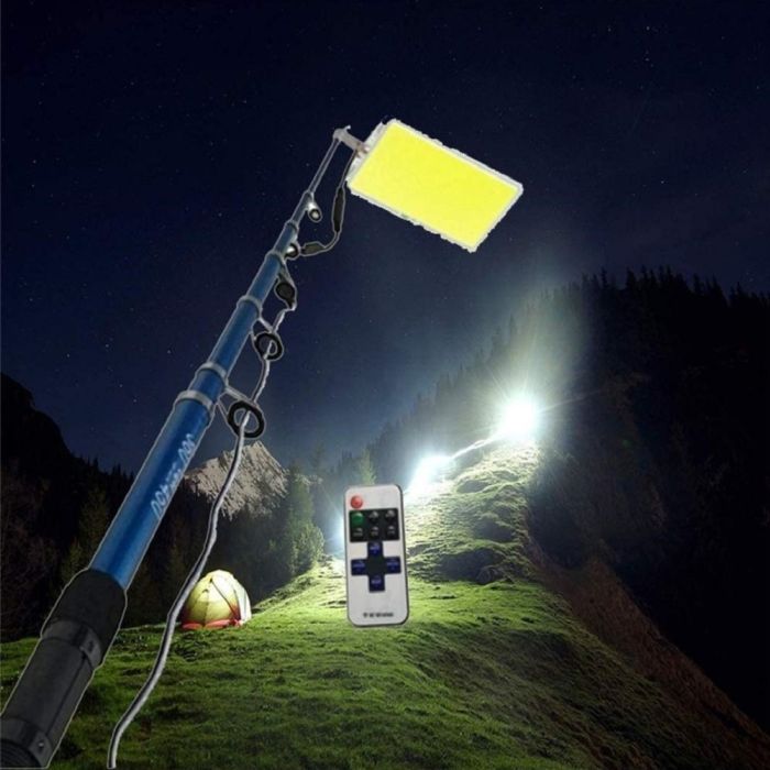 يتميز كشاف المخيم LED بعامود تلسكوبي طويل قابل للتعديل يسمح لك بتوجيه الضوء أينما تريد، مع 3 أوضاع إضاءة وسطوع يصل إلى 4600 لومن، كما يمكنكم تشغيله بمجرد توصيله ببطارية السيارة أو أي بطارية 12 فولت