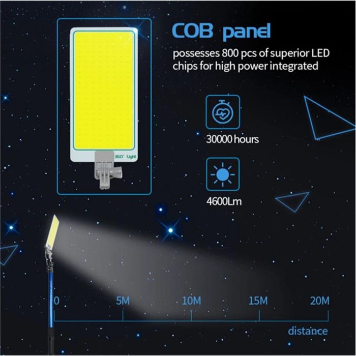 كشاف تلسكوبي LED بتصميم قابل للتمدد للأنشطة الخارجية، مجهز بعامود قابل للتعديل يصل إلى 4.5 متر، ولوحة مزودة بـ 800 مصباح LED تعمل حتى 30000 ساعة مع ريموت