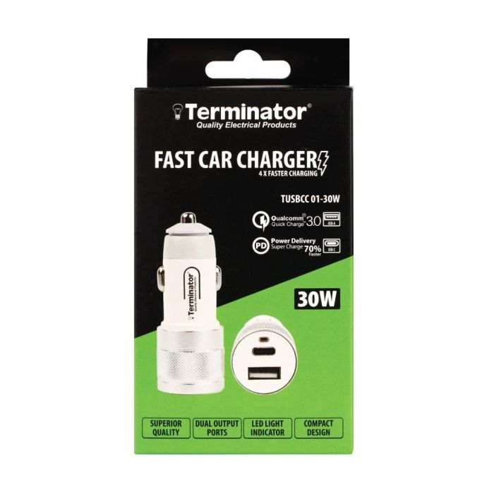 - شاحن سيارة بمنفذ مزدوج بقوة 30 واط من Terminator