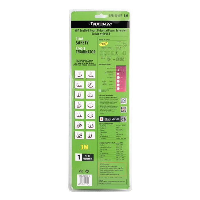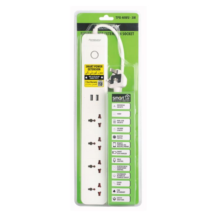 - اشتراك كهربائي واي فاي ذكي 4 مخارج 2 USB من Terminator- أبيض