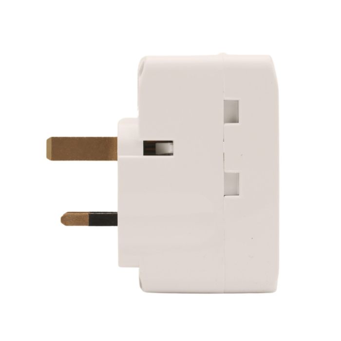 - محول متعدد المقابس بثلاثة اتجاهات من المملكة المتحدة مع منفذي USB من النوع C بقوة 2.1 أمبير ومؤشر ومقبس منصهر بقوة 13 أمبير