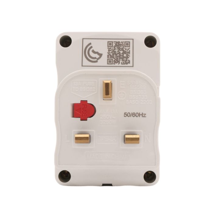 - محول متعدد المقابس بثلاثة اتجاهات من المملكة المتحدة مع منفذي USB (من النوع A وC) بقوة 2.1 أمبير ومؤشر ومقبس منصهر بقوة 13 أمبير