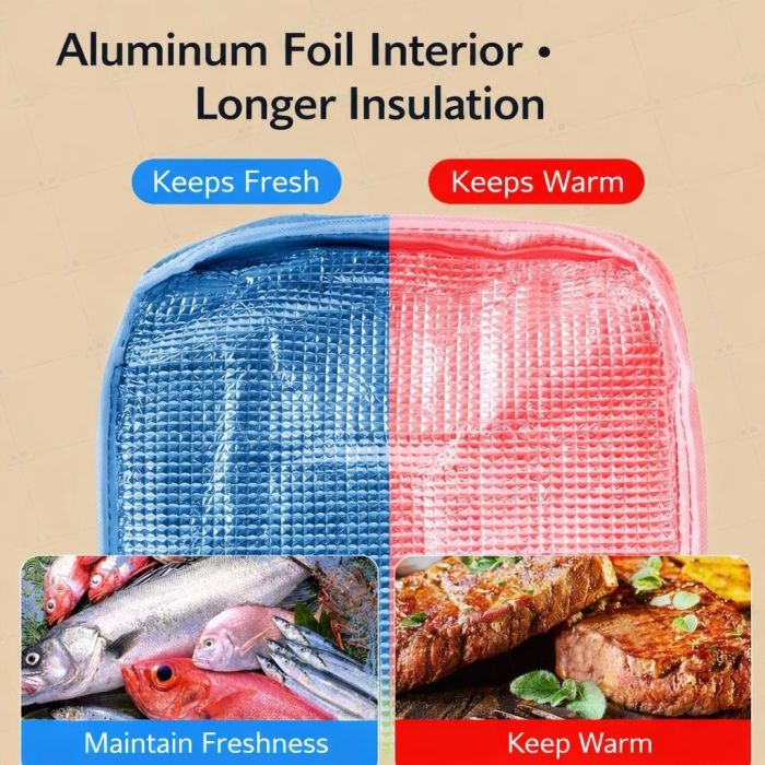 الأن يمكنك الحافظ على الطعام والمشروبات طازجة وباردة أو دافئة مع حقيبة التخزين الحرارية المعزولة. بطانتها الداخلية من رقائق الألمنيوم توفر عزلًا ممتازًا، بينما تصميمها العملي يجعلها مثالية للرحلات، التسوق، أو الاستخدام اليومي. متوفرة بألوان متنوعة لتناسب ذوقك.