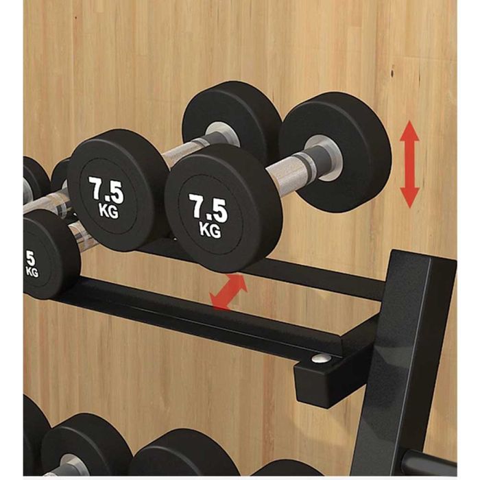 - تصميم من 3 طبقات يستوعب حتى 8 أزواج من الدمبلز