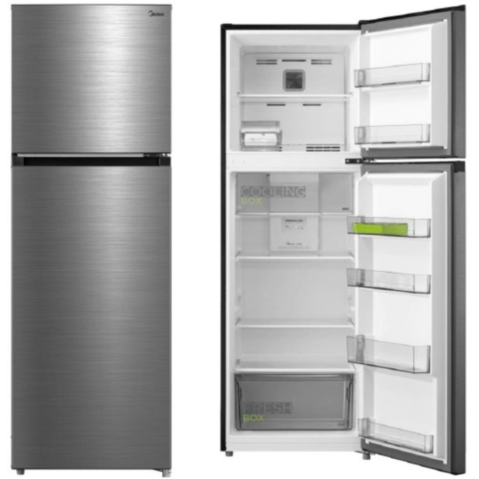 ثلاجة بفريزر علوي سعة 385 لتر 13.6 قدم مكعب - فضي من Midea
