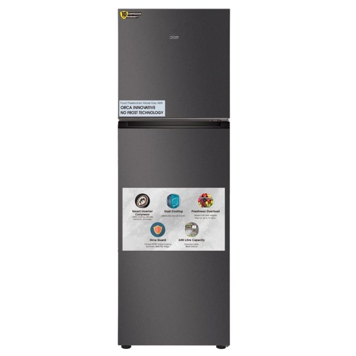 تقدم Orca الحل الأمثل للمطابخ العصرية التي تبحث عن الكفاءة والتصميم الأنيق. تتميز هذه الثلاجة بنظام تبريد متطور يضمن بقاء أطعمتك طازجة لفترات طويلة، مع توزيع مثالي للهواء البارد في كافة الأرفف، ولون فضي داكن يضيف لمسة من الفخامة والتميز لديكور منزلك