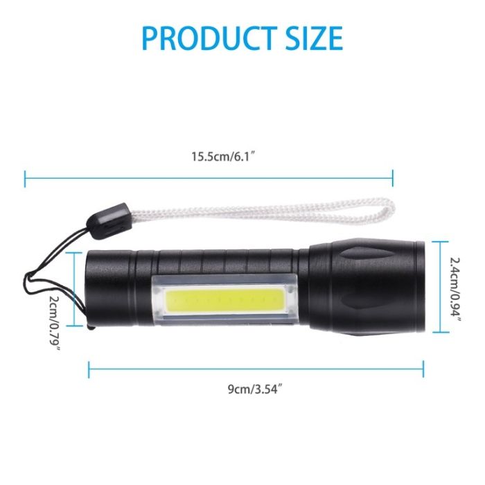 - ثلاثة أوضاع إضاءة: COB مرتفع ، XPE مرتفع ، XPE فلاش