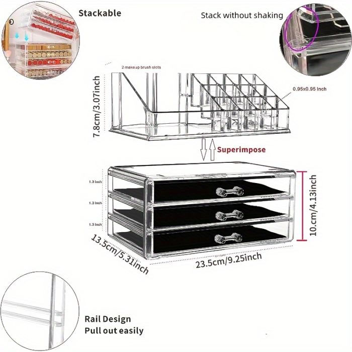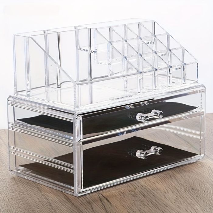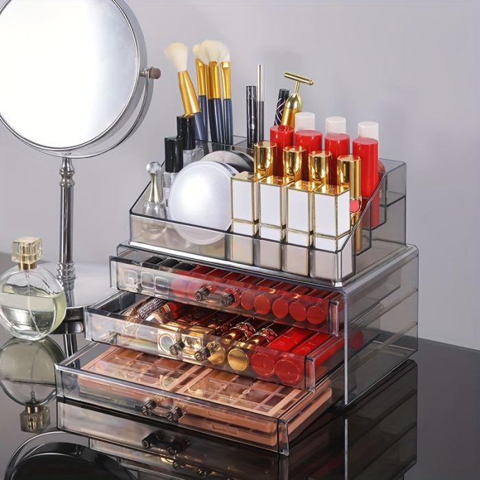 - صندوق مستحضرات تجميل شفاف مع أدراج
