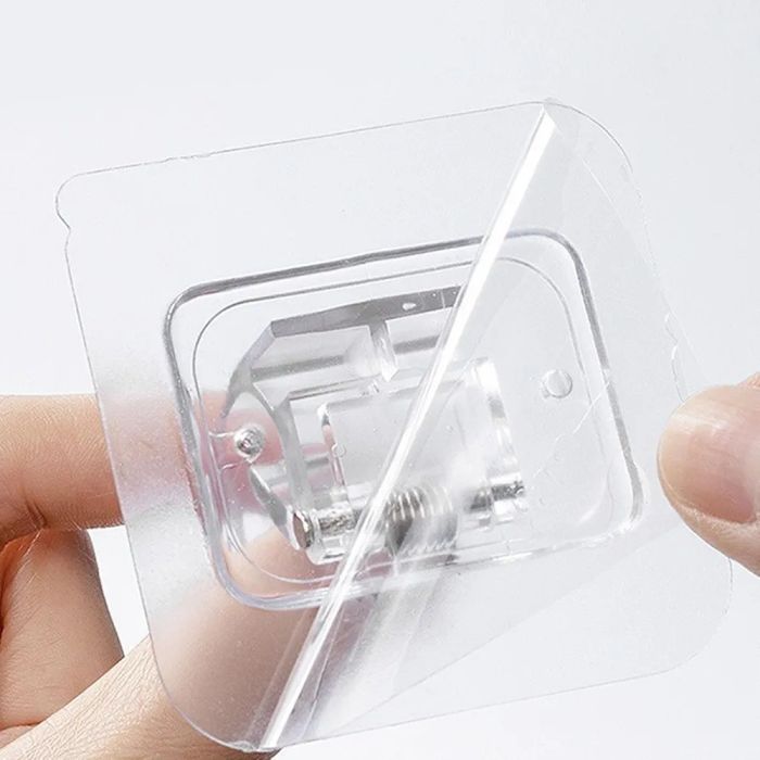 - مشبك شفاف ذو لاصق قوي للتثبيت بدون حفر