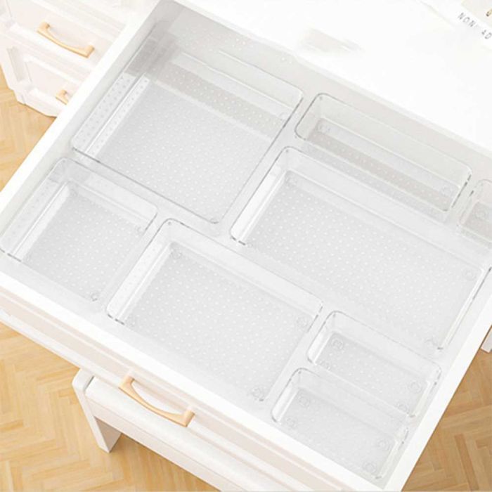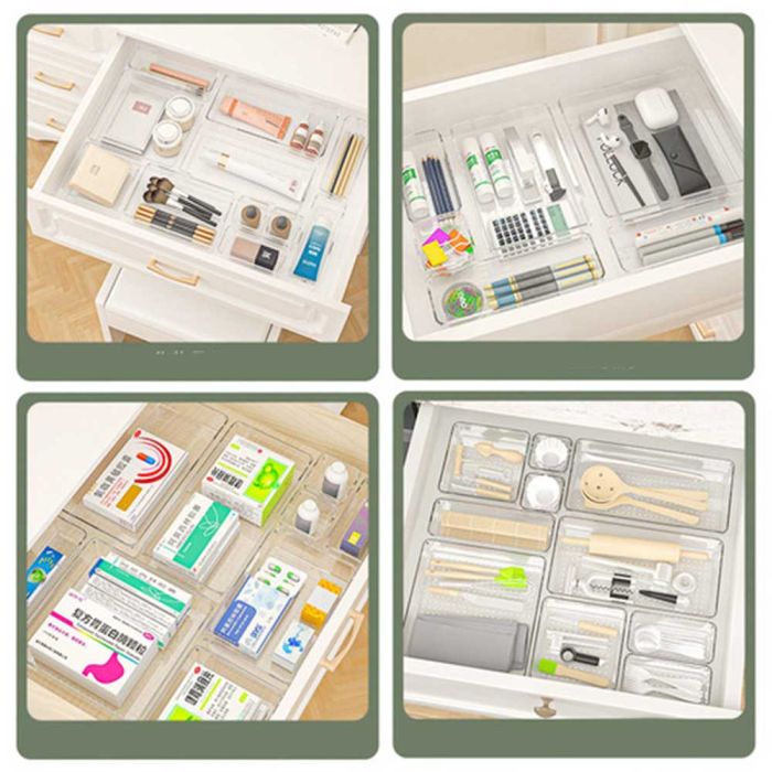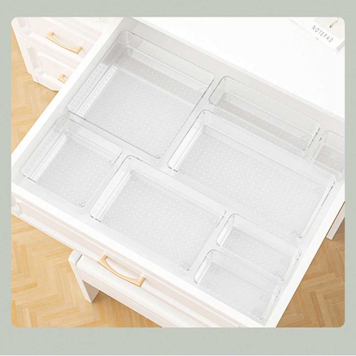 صندوق تخزين شفاف بفواصل داخلية يمنح طريقة مرتبة للاحتفاظ بالاكسسوارات أو أدوات التجميل أو المستلزمات الصغيرة، الشفافية تسهل رؤية المحتويات والوصول إليها فورًا، مصنوع من خامات متينة تحافظ على جودته، يناسب غرف النوم أو المكاتب أو طاولات التزيين، ويضيف لمسة أنيقة إلى المكان.