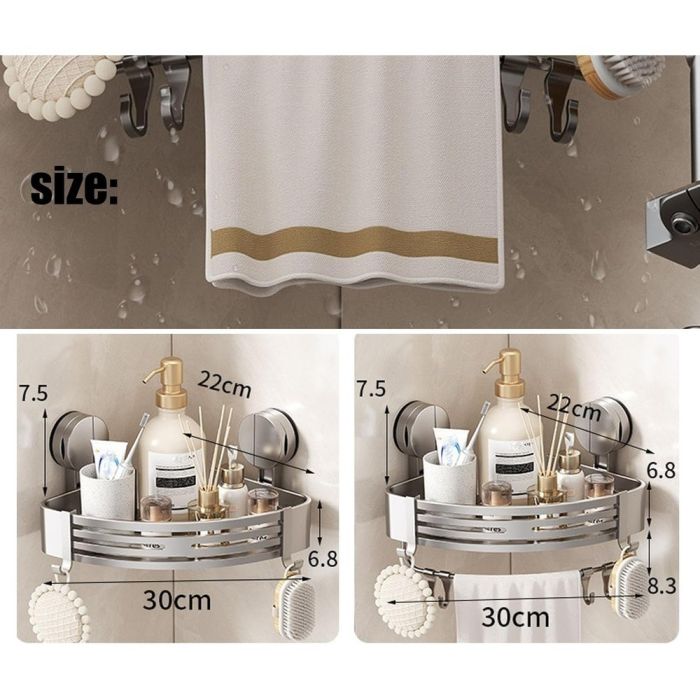 استفد من كل زاوية في حمامك مع رف الزاوية الثلاثي المتين، المصمم لتخزين جميع مستلزماتك بسهولة وأمان. المواد المقاومة للماء والصدأ تجعل هذا الرف مثاليًا للاستخدام اليومي