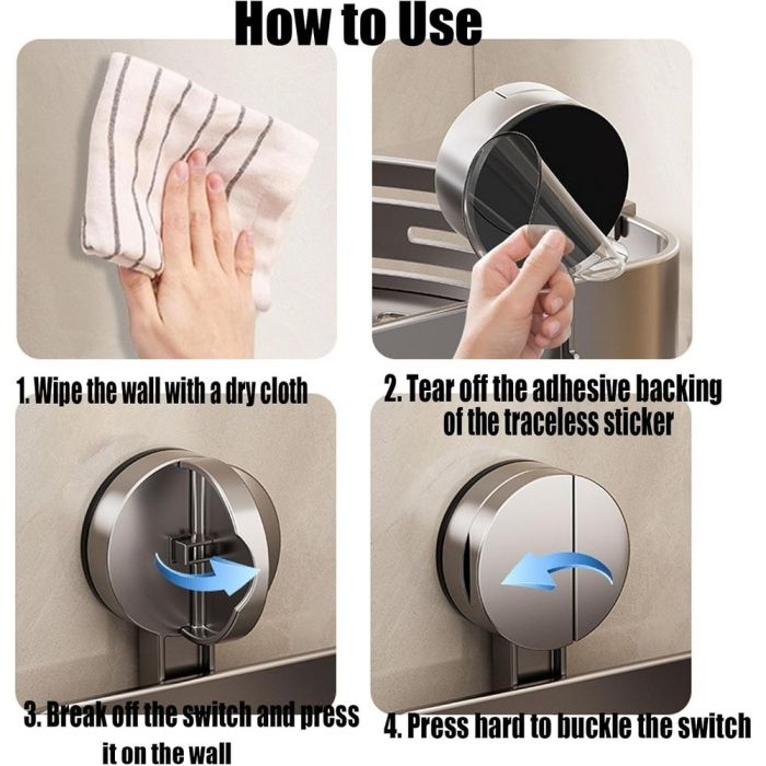 - سعة كبيرة لتخزين شامبو، منظف، وصابون