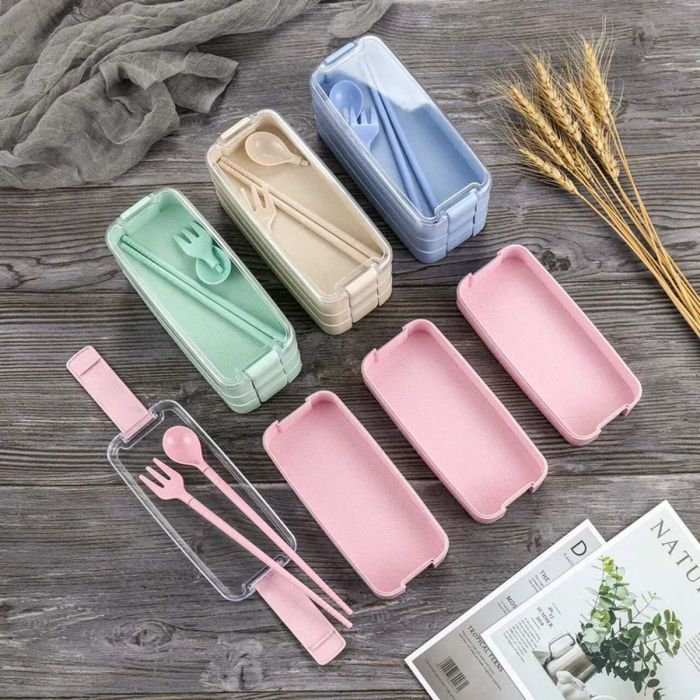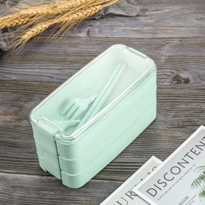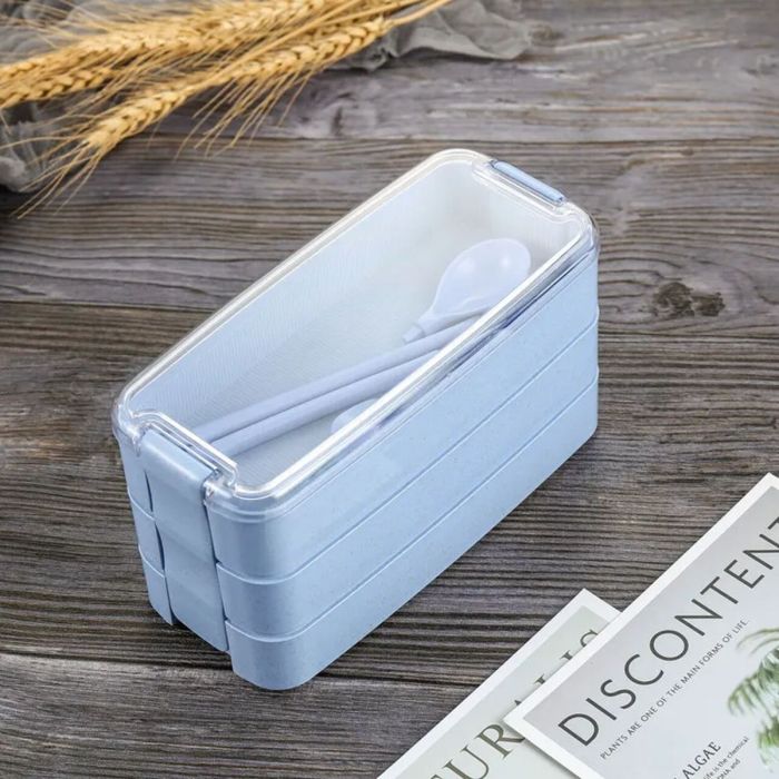 - علبة الطعام ثلاثية الطبقات - 900 مل مع أدوات المائدة