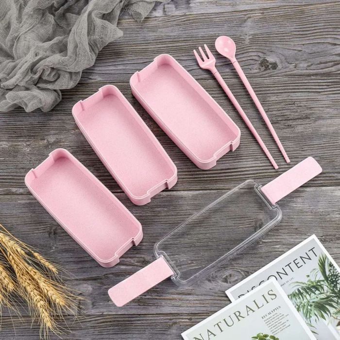 استمتع بوجبات الطعام الخاصة بك مع صندوق الغداء الصديق للبيئة المصنوع من قش القمح، وهو صندوق بينتو مكون من ثلاث طبقات مصمم للراحة والاستدامة. يأتي مع ملعقة وشوكة وهو آمن للاستخدام في الميكروويف. متوفر بأربعة ألوان، وهو مثالي للأفراد المهتمين بالبيئة الذين يبحثون عن طريقة عملية وأنيقة لحمل وجباتهم
