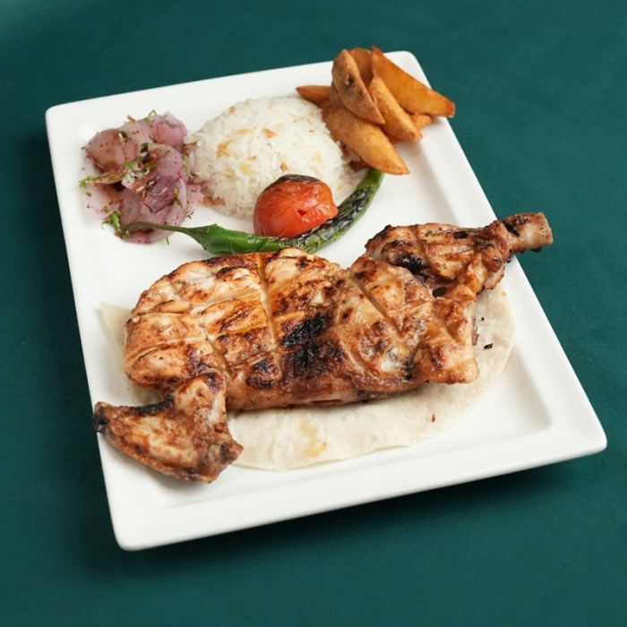 استمتع بوجبة لذيذة في GreenBursa مع تشكيلة مميزة في وجبة واحدة: كباب شهي، كباب دجاج ، نصف دجاجة مشوية– مع مشروبين غازيين منعشين.