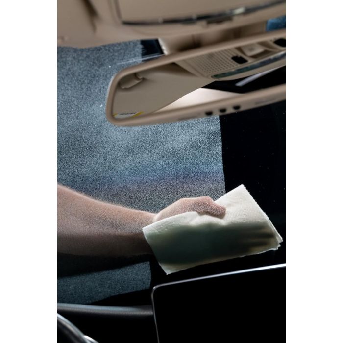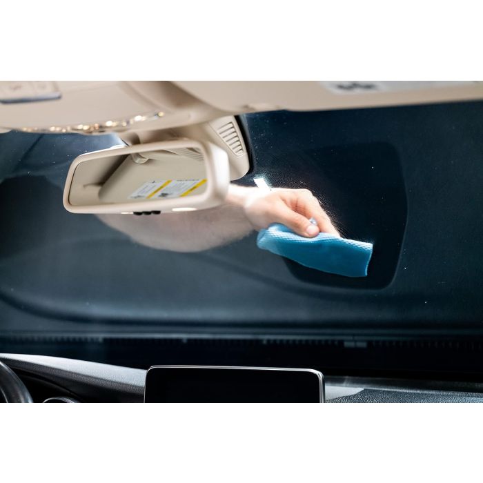 كيفية الاستخدام - اغسل الزجاج الخارجي بالكامل واتركيه حتى يجف، ثم أضف التركيبة إلى قطعة قماش وامسح الزجاج بحركة دائرية. اتركه حتى يجف حتى تصبح ضبابية خفيفة، ثم كرر ذلك مرة ثانية.