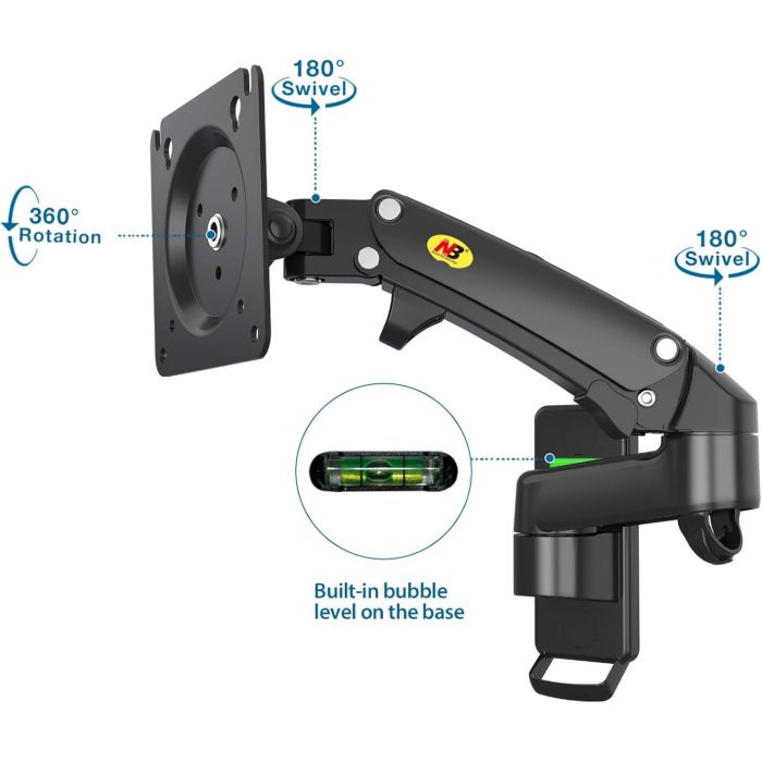 ارتق بمساحة عملك مع ذراع شاشة مكتبي مريح مصمم لتعزيز الراحة والإنتاجية. يوفر نظام الزنبرك الغازي المتطور تعديلا سلسا للارتفاع والزوايا مما يحافظ على ثبات الشاشة في أي وضع. يدعم الشاشات من 17 بوصة حتى 35 بوصة مع توافق كامل مع معيار VESA 75×75 أو 100×100 وبقدرة تحمل موثوقة من 3 إلى 12 كجم. بفضل التصميم المرن للحركة يمكن إمالته من +85° إلى −30° مع تأرجح ±90° ودوران 360° مما يسهل التبديل بين الوضعين الأفقي والرأسي.
