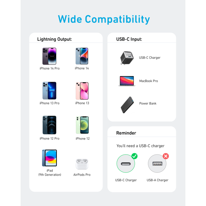 - كيبل شحن Lightning إلى Type C بطول 0.9 متر من Anker