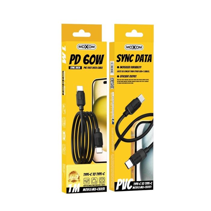 - كيبل نقل بيانات سريع Type-C إلى Type-C بقوة 60 واط PD من مادة PVC من Moxom