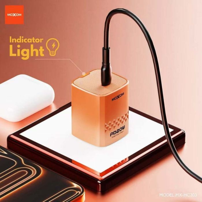 - شاحن للسفر من Type-C إلى Type-C قوة 20 واط من Moxom
