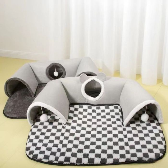 صفقة اليوم هي سرير ونفق لعب للقطط شكل حرف U