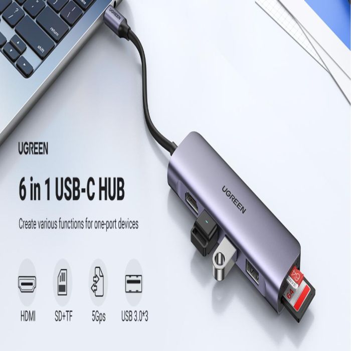 - محول 6 في 1 من USB-C إلى USB-A وHDMI بدقة 4K من UGREEN