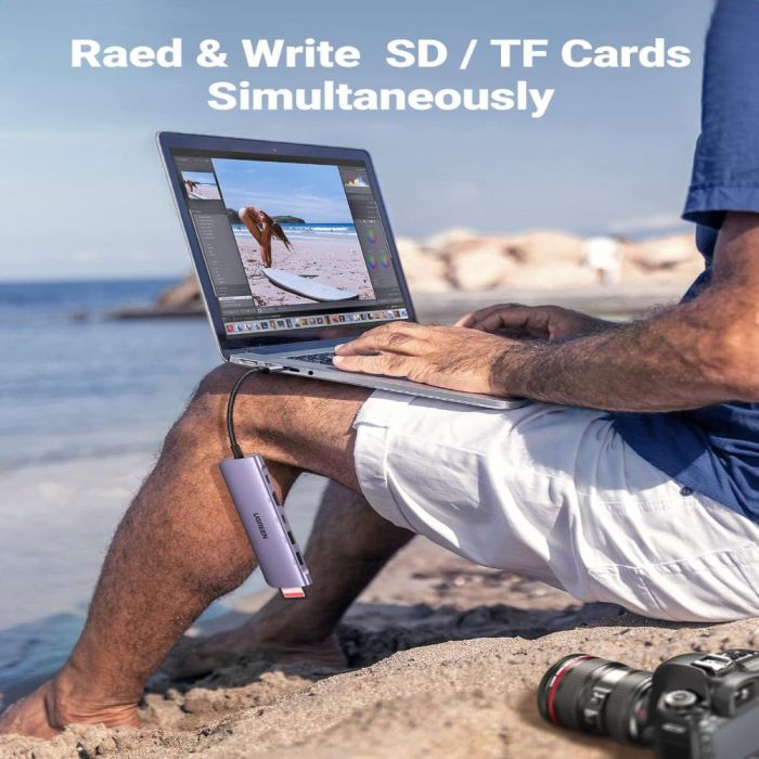 - محول 7 في 1 من USB-C إلى USB مع 2 منفذ 95 واط PD وHDMI بدقة 4K من UGREEN