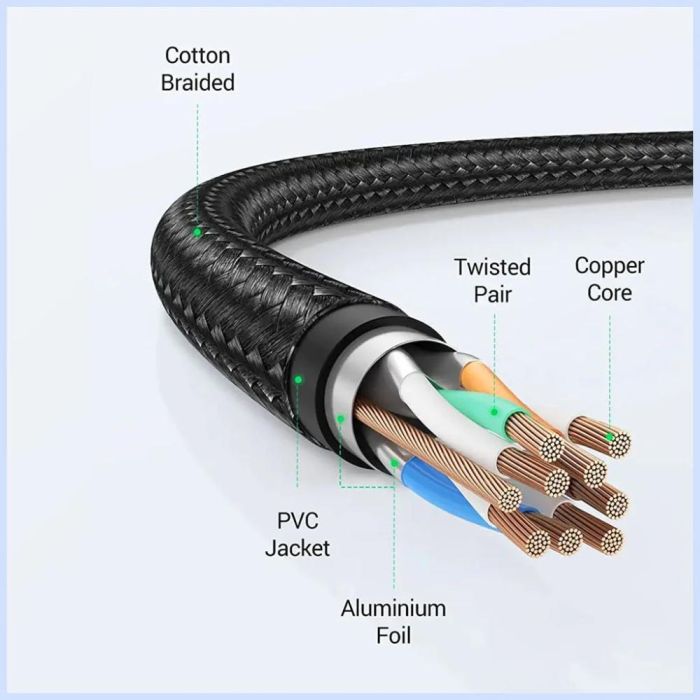 - كيبل توصيل شبكات مضفر Cat8 مضاد للتداخل من UGREEN