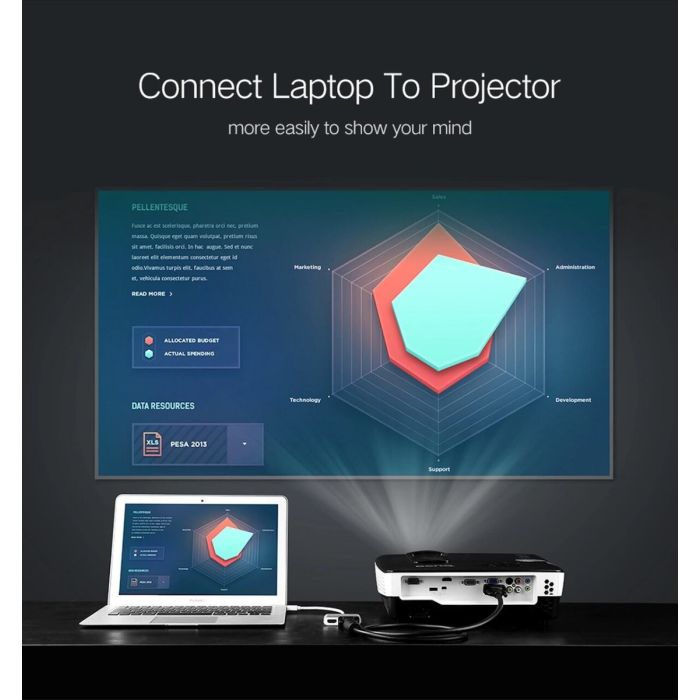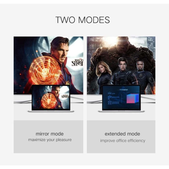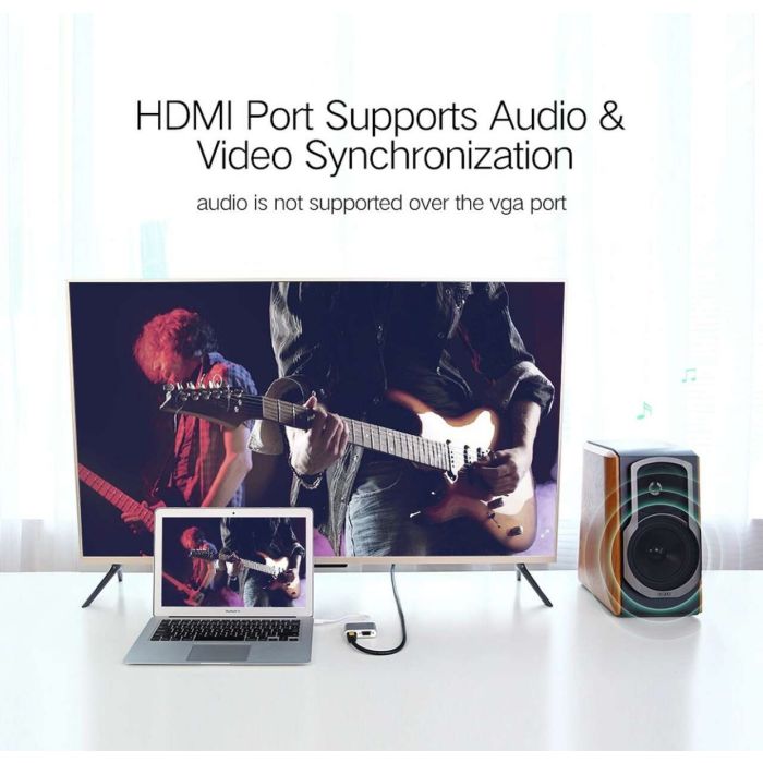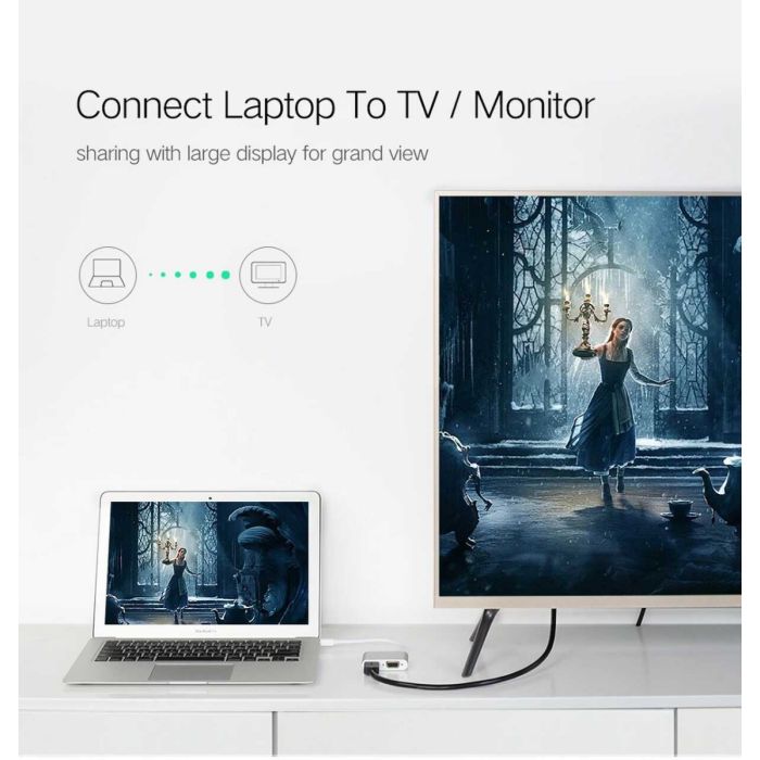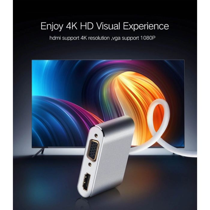 حل سريع يفتح لك مساحة عرض أكبر من جهازك المزود بمنفذ Mini DisplayPort، مع خيار توصيل HDMI أو VGA حسب الشاشة المتاحة. مناسب لعرض العروض التقديمية بسهولة أو لتوسيع سطح العمل بشكل مريح، مع إخراج صوت عبر HDMI ليكتمل المشهد عند الاستخدام على الشاشات الحديثة.