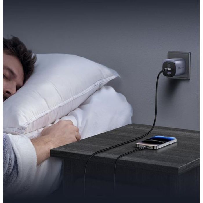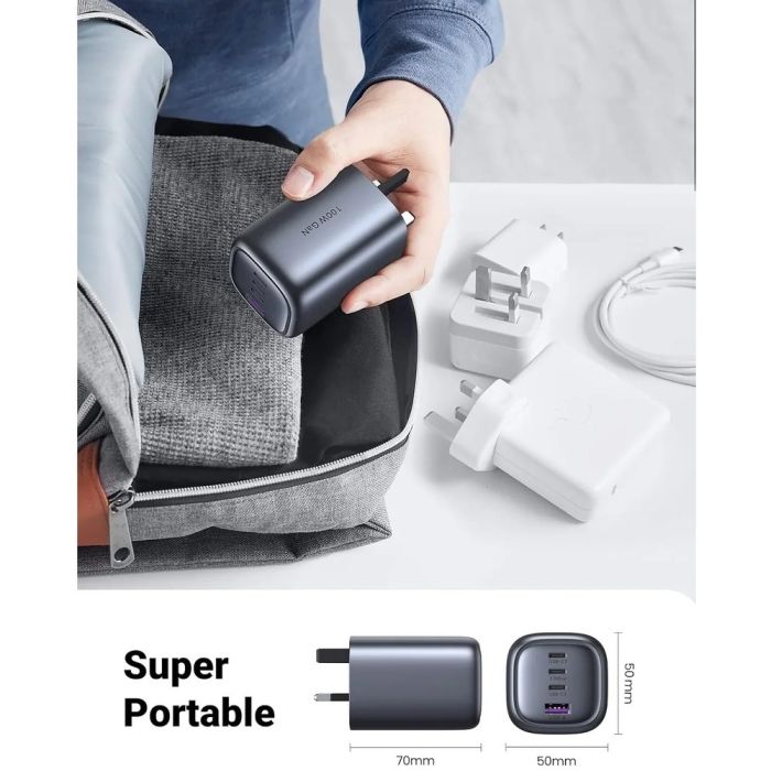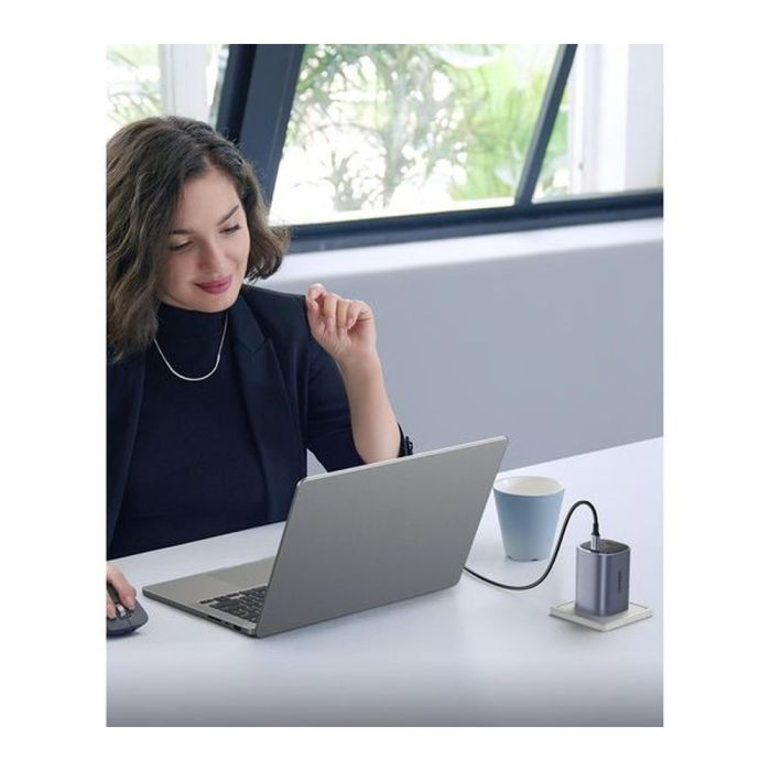 - تقنية GaN المتقدمة تمنحك طاقة جبارة في تصميم مدمج يوفر مساحة في حقيبتك.