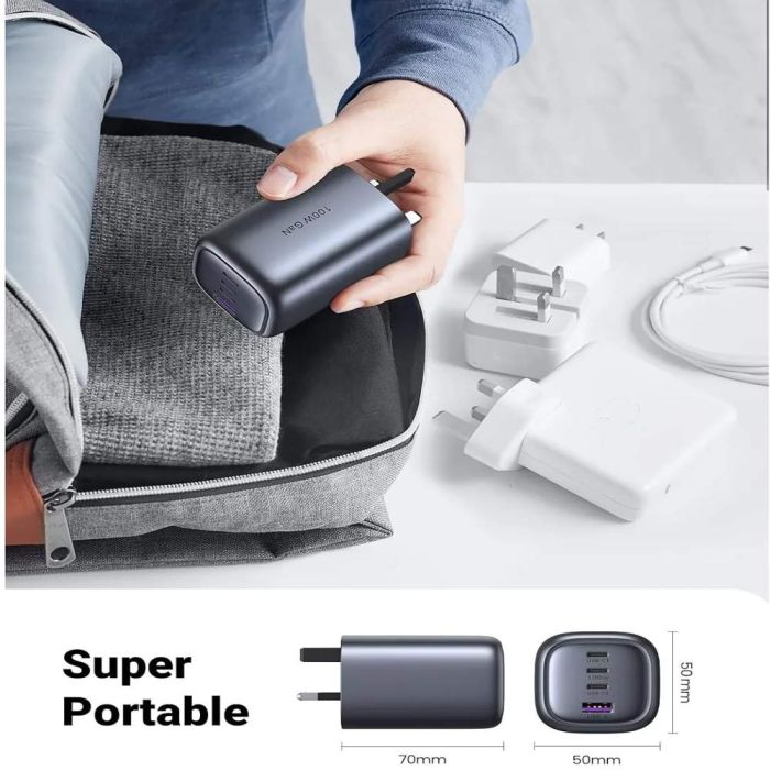 - قوة شحن هائلة تصل إلى 100 واط تشحن الهواتف، الأجهزة اللوحية، وأجهزة اللابتوب.