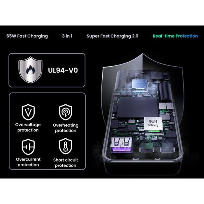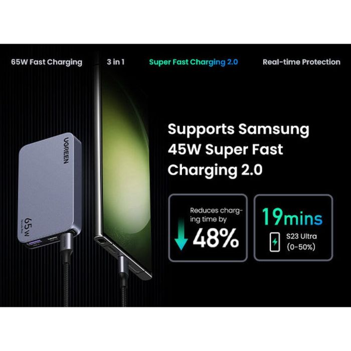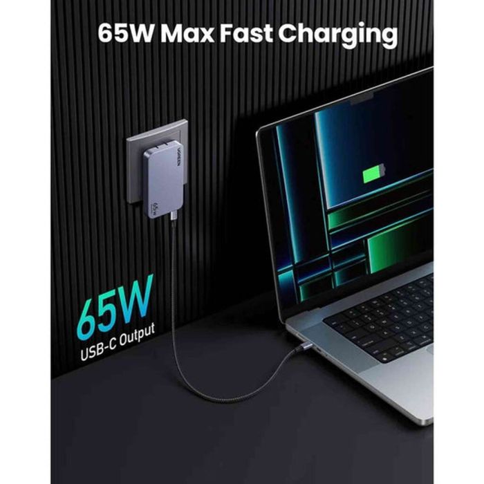 - شاحن 65 واط نيكسود برو 65 وات فائق النحافة وسريع بثلاثة منافذ GaN مع مقابس حائط عالمية من Ugreen