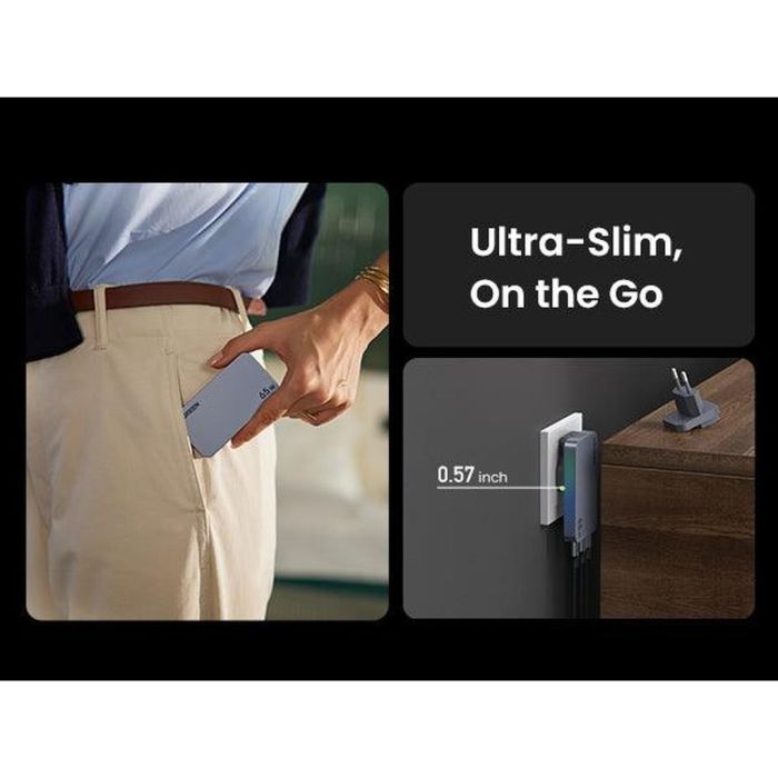 شاحن 65 واط نيكسود برو 65 وات فائق النحافة وسريع بثلاثة منافذ GaN مع مقابس حائط عالمية من Ugreen