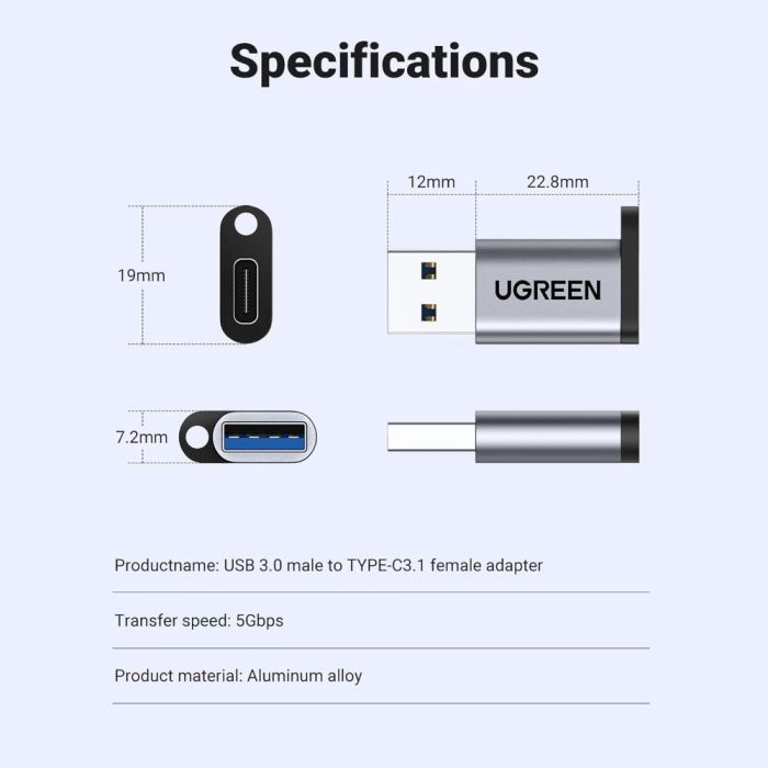 - محول USB-C أنثى إلى USB-A ذكر بسرعة 10 جيجابت في الثانية من UGREEN