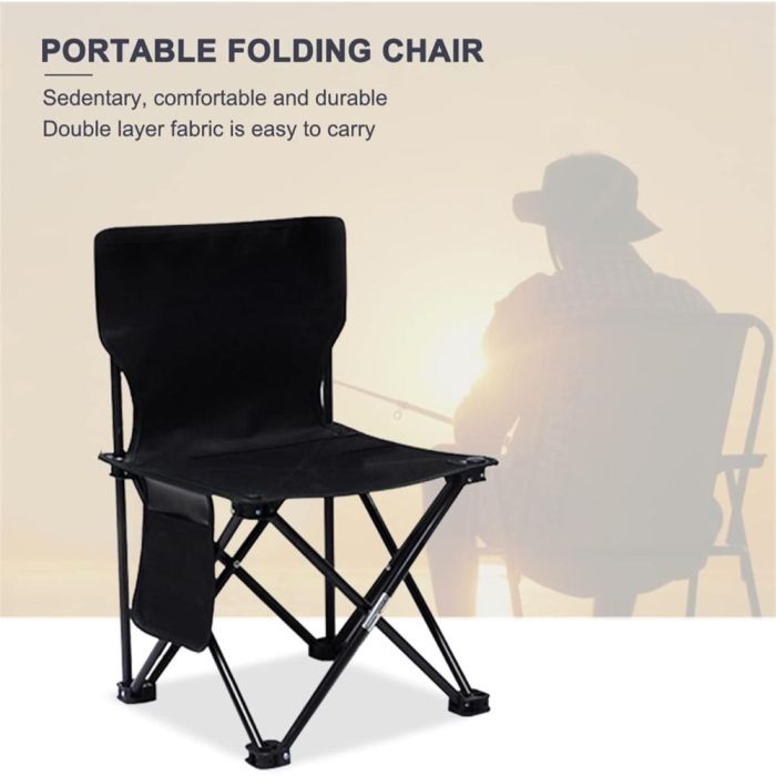 كرسي تخييم عملي وخفيف الوزن، سهل الحمل والطي، يتحمل حتى 110 كجم، مثالي للرحلات، الصيد، التخييم، والأنشطة الخارجية.