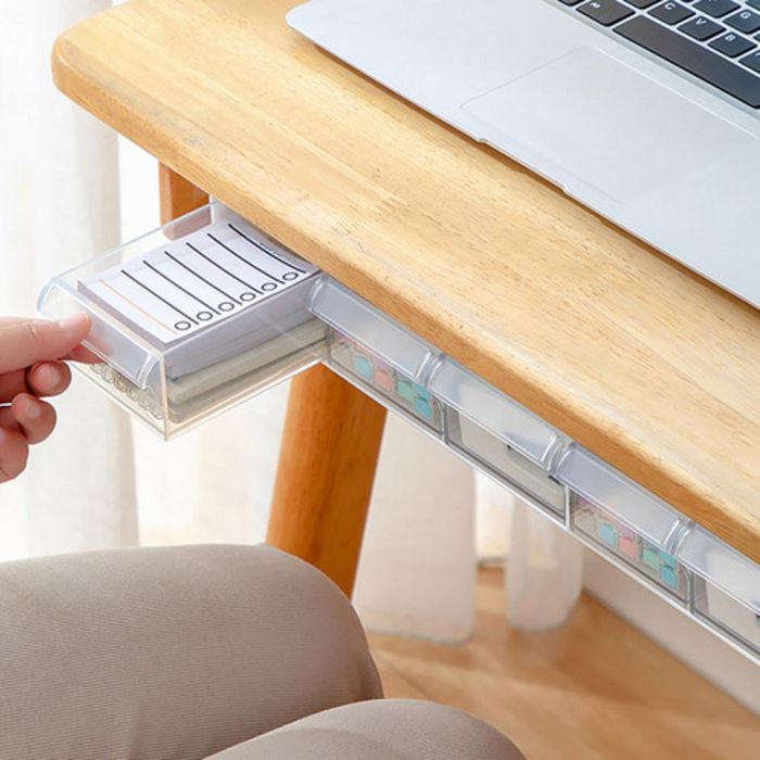 صندوق تخزين أنيق تحت المكتب مصنوع من البلاستيك عالي الجودة، يوفر حلاً عمليًا لتنظيم المساحة بفضل تصميمه الذكي الذي يتناسب مع مختلف أنواع المكاتب، يتيح لك الحفاظ على الأدوات المكتبية والكيبلات واللوازم الدراسية في مكان واحد بشكل مرتب وسهل الوصول، مما يعزز من كفاءة العمل ويضفي لمسة من الأناقة والنظام على بيئة العمل الخاصة بك، مما يجعله الخيار المثالي لكل من يبحث عن التنظيم والراحة في مكان العمل.