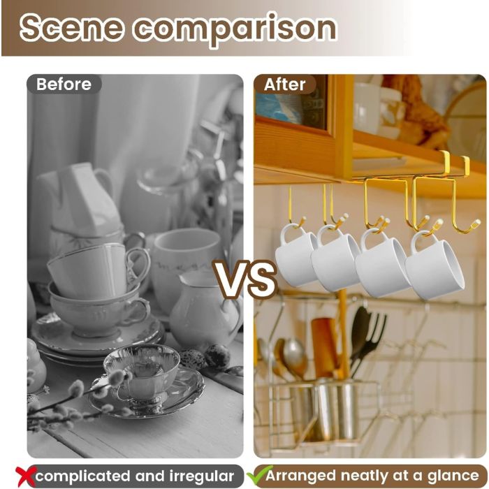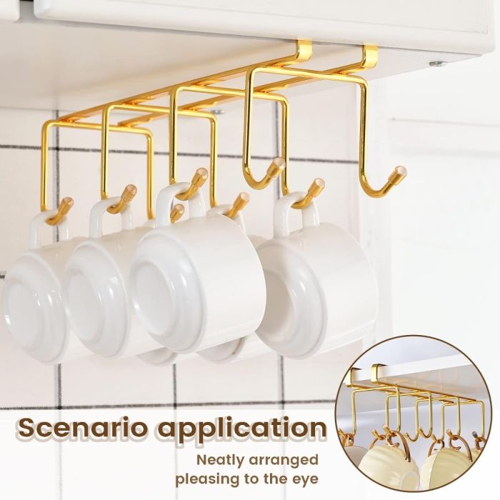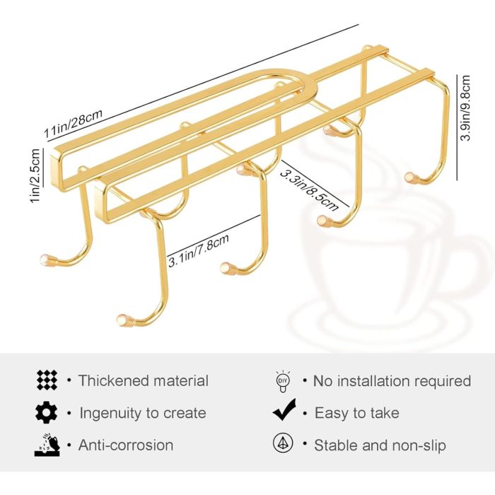 قم بتنظيم مجموعتك من أكواب القهوة بشكل أنيق وعملي. يثبت بسهولة تحت الرف لتوفير مساحة قيمة في المطبخ كما انه مصنوع من مواد عالية الجودة للتحمل والاستدامة بتصميم متين وعملي يتناسب مع أي ديكور