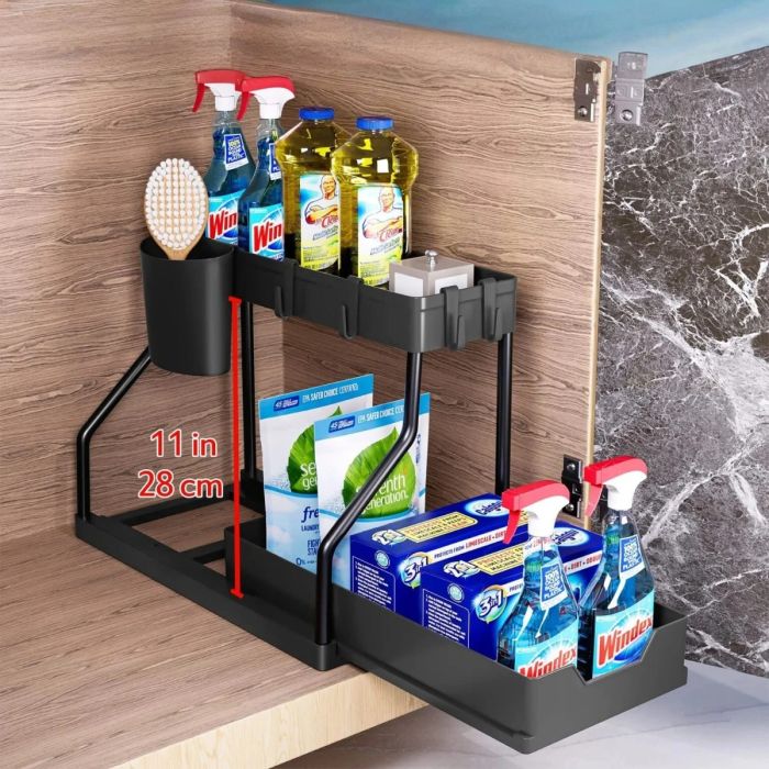 صفقة اليوم هي منظم أسفل الحوض من طبقتين 39.5 × 22 × 34.5 سم - ألوان متنوعة