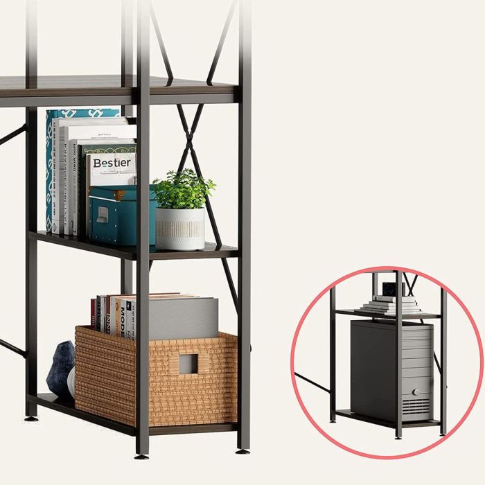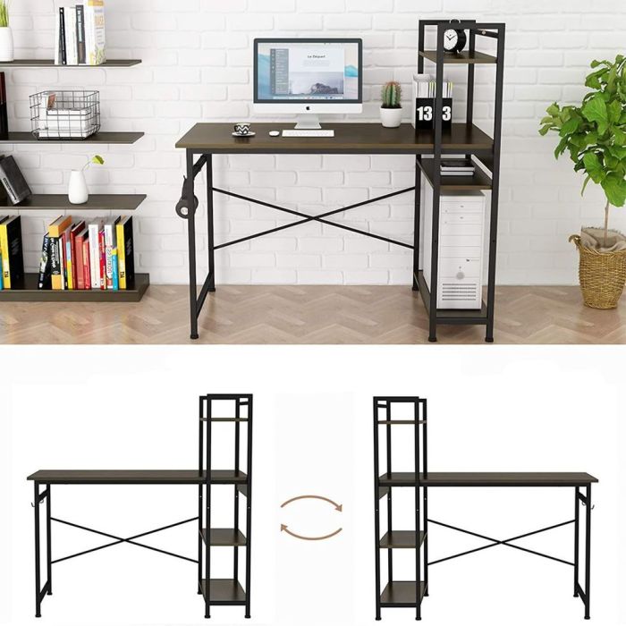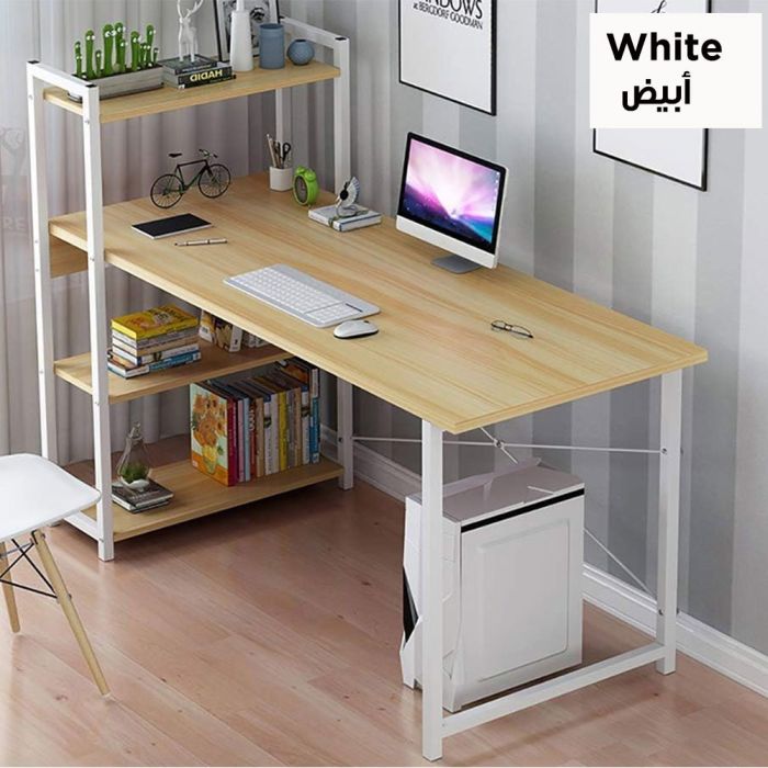 - تصميم متكامل: يمكن ترتيب المكتب والأرفف حسب الحاجة