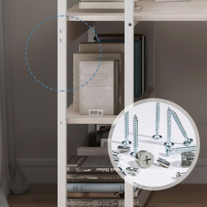 - 4 أرفف لتخزين الكتب والأدوات والديكورات مع إمكانية تبديل وضعية الأرفف