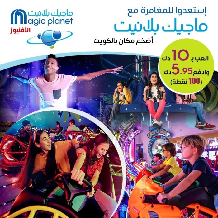 استمتعوا بجرعة لا تنتهي من الإثارة في الوجهة الترفيهية الأولى في الكويت - ماجيك بلانيت! من الألعاب المشوّقة إلى المغامرات الممتعة، هناك متعة للجميع. احضروا مع العائلة والأصدقاء لقضاء أوقات مليئة بالضحك والذكريات التي لا تُنسى!