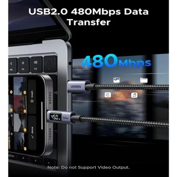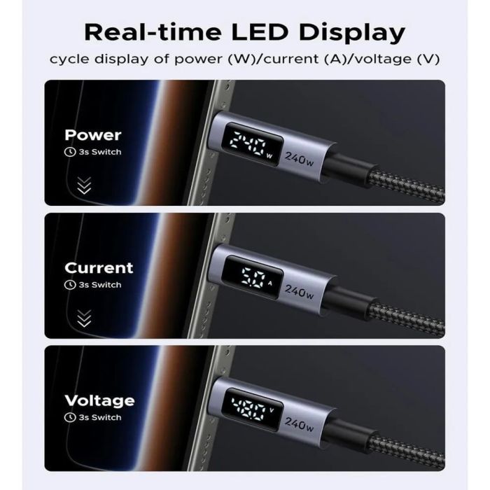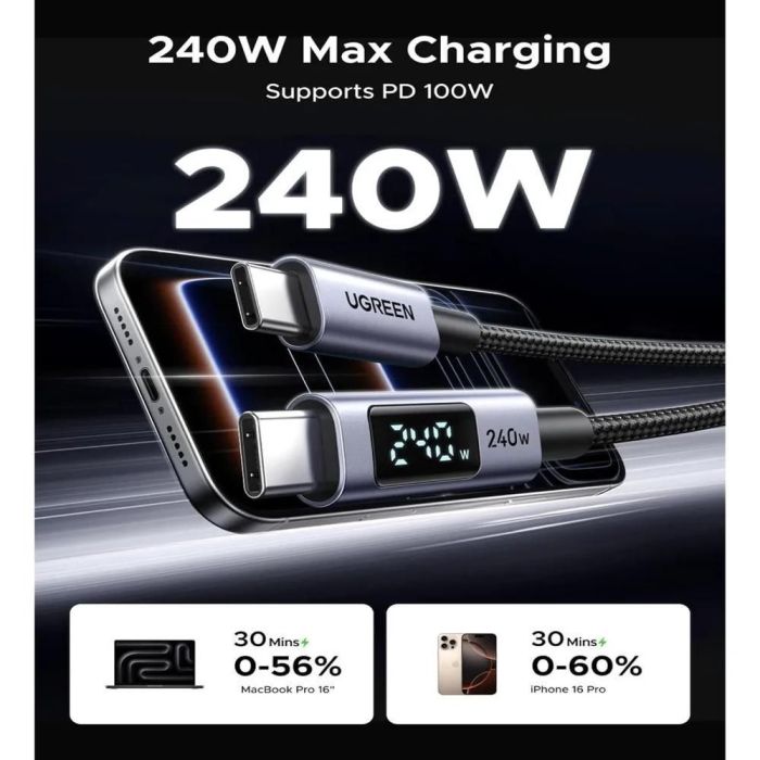 كيبل من USB-C إلى USB-C شحن سريع وشاشة LED بقوة 240 واط من UGREEN