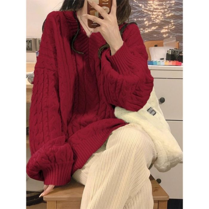 صفقة اليوم هي بلوفر محبوك بياقة V للسيدات