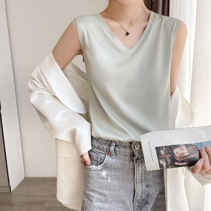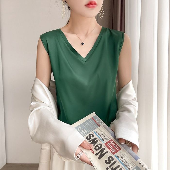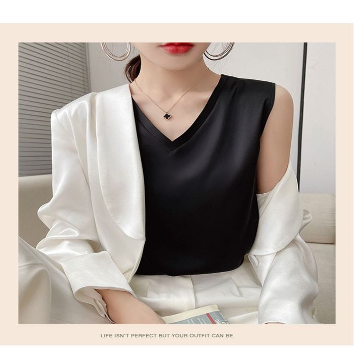 - توب ساتان بأكمام قصيرة للسيدات