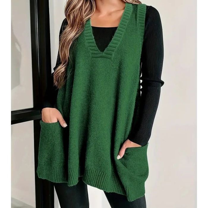 - كارديجان بفتحة رقبة على شكل حرف V وبدون أكمام للسيدات