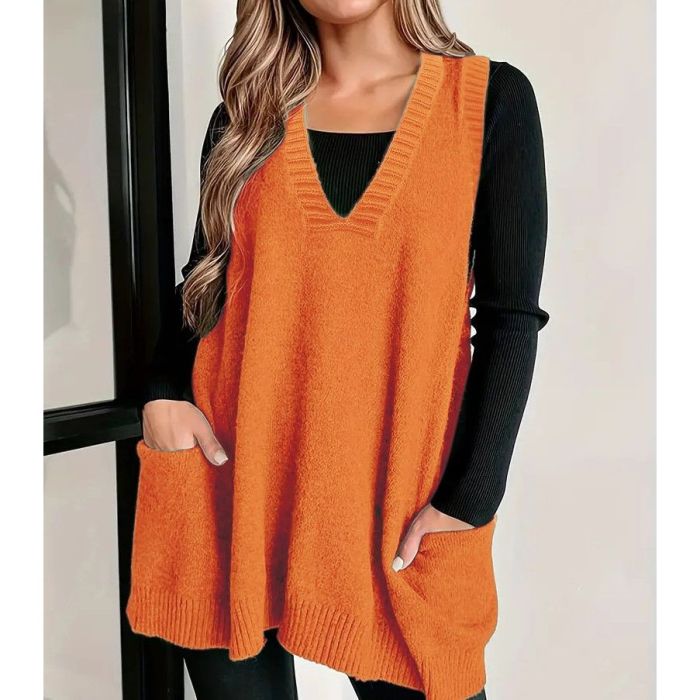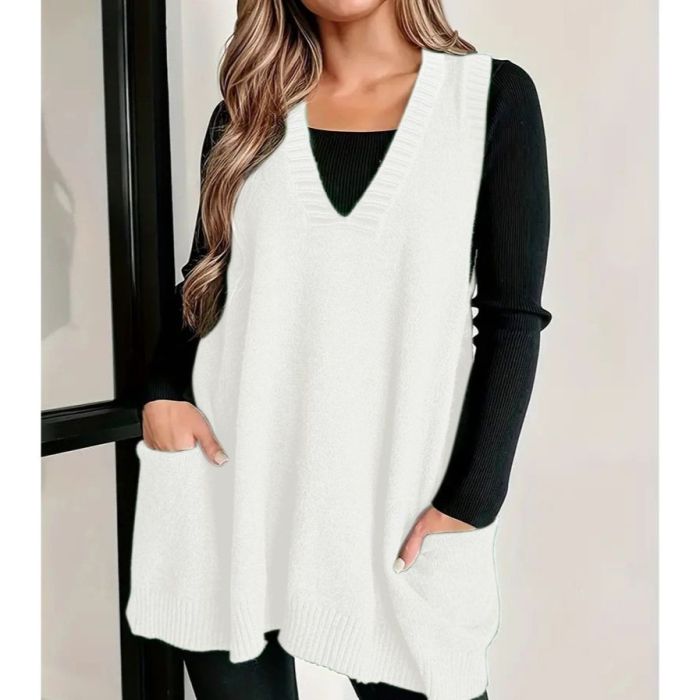 كارديجان بفتحة رقبة على شكل حرف V وبدون أكمام للسيدات