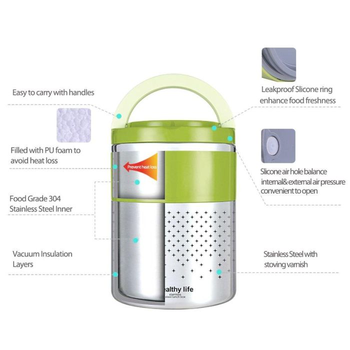 - تصميم من 4 طبقات يحافظ على درجة حرارة الطعام لأكثر من 6 ساعات